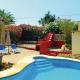 This property is detached with a fantastic roof top sun terrace with panoramic views over the sea. It has two bedrooms, one en suite and another bathroom, both with shower cubicles. It is 650 metres from the beach and the restaurants and bars are all a short walk away. It has another patio outside the living room and a pretty garden. It is in a quiet road with parking on the plot, and it has WIFI internet and is air conditioned. The community swimming pool is only 50 metres from the property.